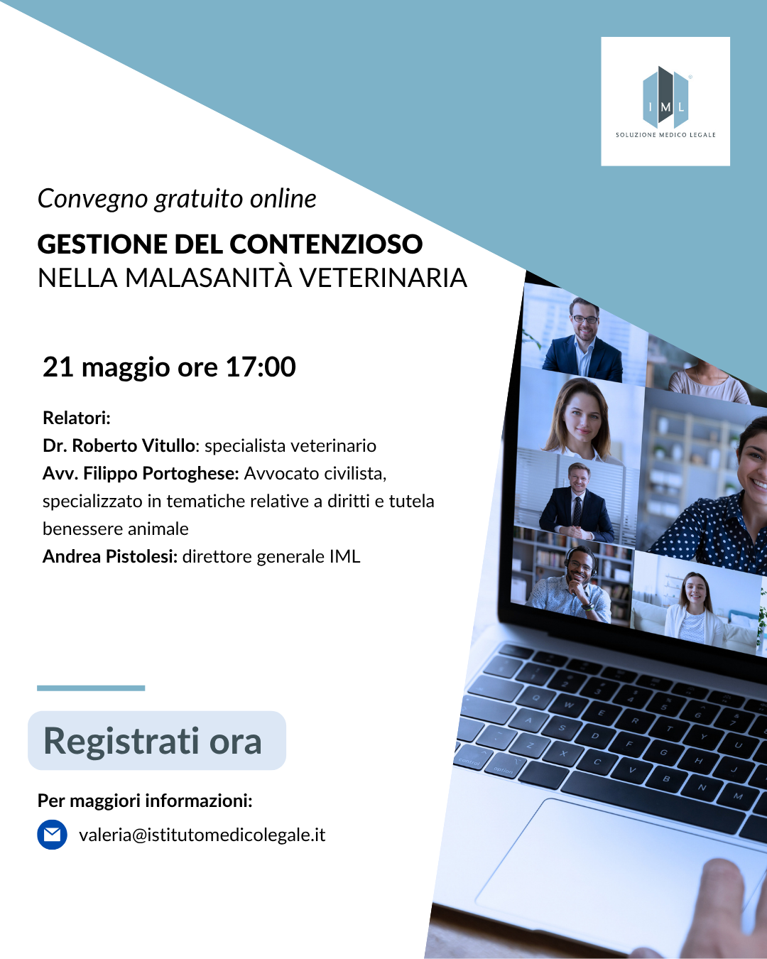 Il webinar IML è stato ben organizzato. Ho trovato interessante la parte tecnica e ho apprezzato di aver ricevuto il materiale didattico e la registrazione del webinar per poterlo rivedere.