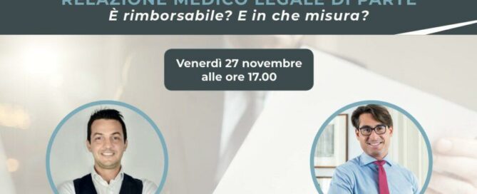 A Istituto Medico Legale, abbiamo oggi un nuovo webinar. Parliamo di Relazione medico legale di parte e capiremo insieme al Dr. Sposimo, se è rimborsabile e in che misura. L’articolo 148 del codice delle assicurazioni, prevede che la richiesta danni debba contenere l’indicazione dell’entità delle lesioni subite. Questo aspetto è fondamentale: non si richiede quindi la [...]